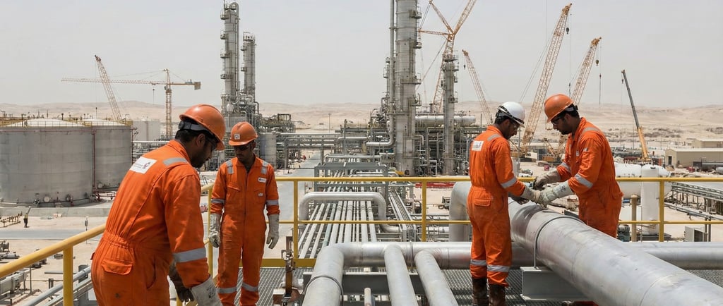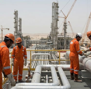 Oil and gas workers in Qatar using certified PPE from suppliers